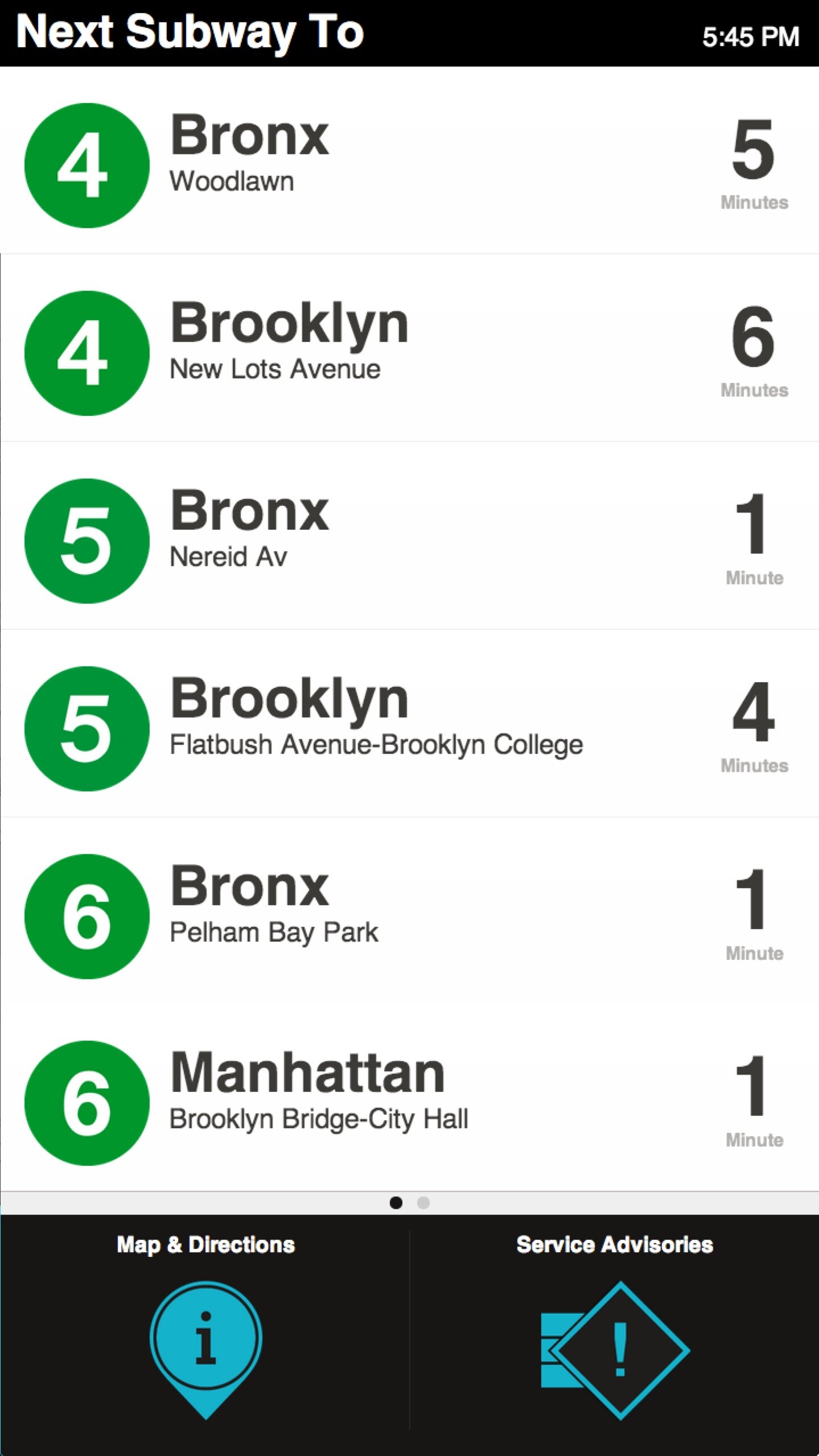 I also developed a unique, map-based, one-touch wayshowing interaction pattern. By turning the iconic NYC Subway Map into a wayshowing tool, a user merely has to tap her destination on the interactive map to see an optimized route animate to the destination. This route uses real-time train information to display the fastest route, and incorporates service interruptions.